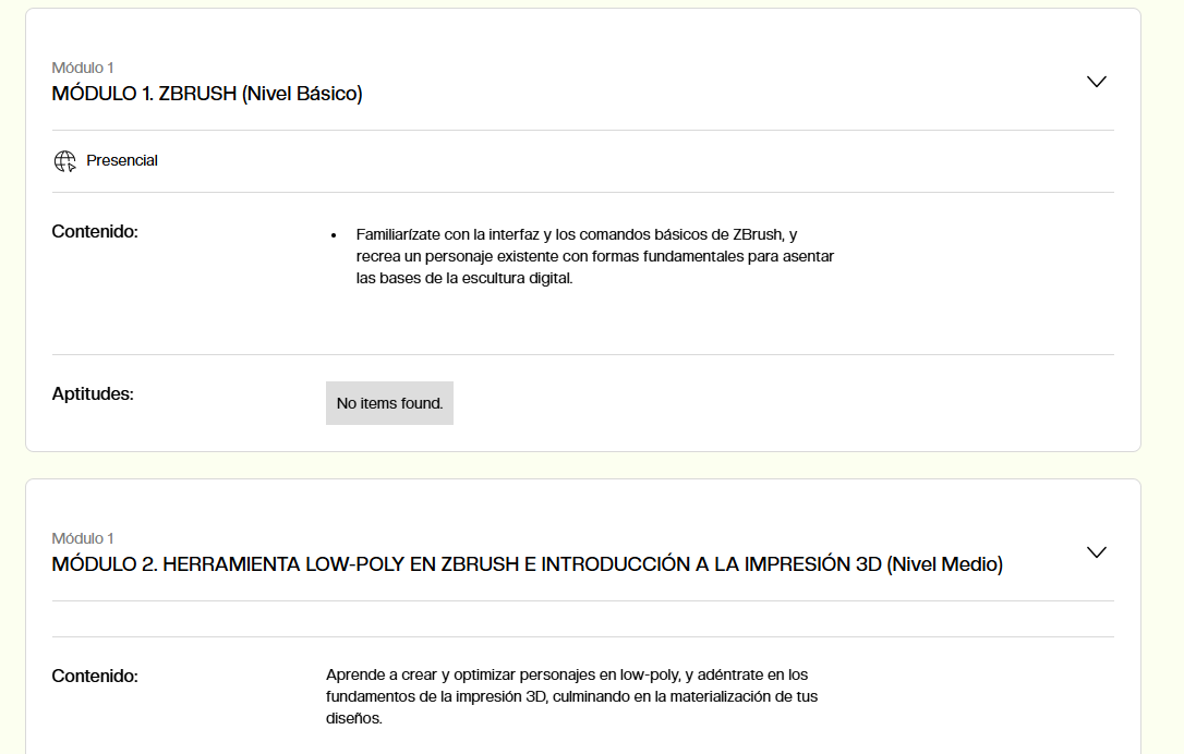 Aptitudes : Se visualizan como etiquetas y debería aclarar que son las aptitudes que desarrollarás